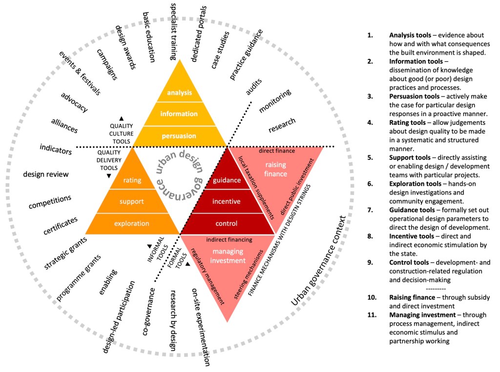 Around Europe, the range of informal tools available to government across its different scales (national to local) are diverse. When mixed with the formal regulatory tools of urban design governance and incentivised through financial mechanisms (a particular focus of Urban Maestro), the outcome is a hugely complex European landscape of varied and often innovative practices from which to learn.