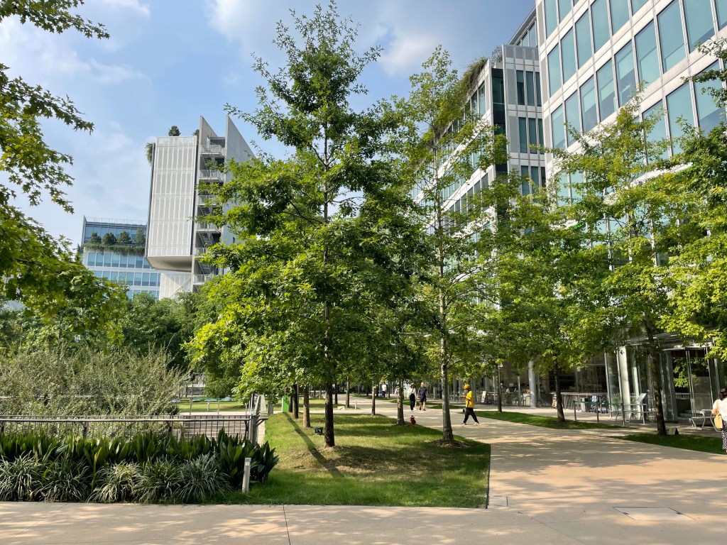 One very obvious change with a direct impact on the ground level experience of cities is the revolution China is seeing in the use of electric cars (far outstripping the West). In Hangzhou and Shanghai my crude assessment was that approaching half of the cars I saw were electric vehicles (easily identifiable by their green numberplates). While all cars are carbon emitters and undermine more active modes of travel, the huge benefits of a reduction in local vehicle pollution was noticeable. This left streets smelling and felling cleaner, despite being just as heavily trafficked as a few years ago.