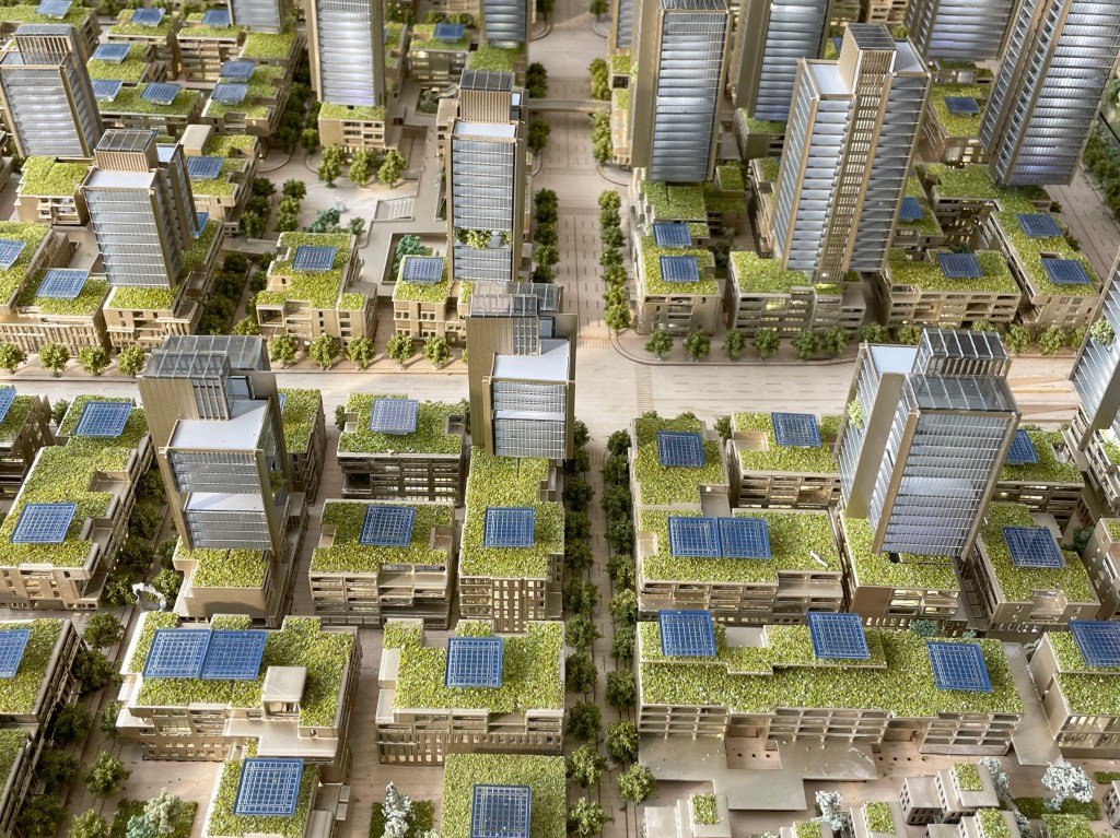 Hangzhou already has two centres. First, a historical centre on the iconic West Lake and second, a new Central Business District, dating from 2007. A third is now proposed as a focus for the burgeoning tech sector in Hangzhou (which is home to the tech giant Alibaba). While the second centre is focussed on a monumental axis across which sit buildings that represent a sun and a moon (I am not sure why), the brief for the new centre was carefully put together, refined and promoted by one of my former students at UCL in a manner that deliberately attempted to move away from such extravagant gestures. Instead, it emphasised human scaled spaces and distinctive urban design to reflects its Chinese context.